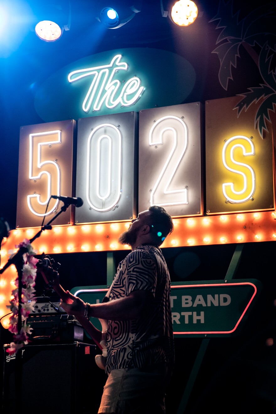 The 502s stopped by Wooly’s in Des Moines midway through their “Great American Road Trip” tour, which has since expanded to include international stops. When their Iowa fans entered the Wooly's in late August, they were met with a grand stage design full of vintage-inspired roadside signs and flashes of orange and blue.